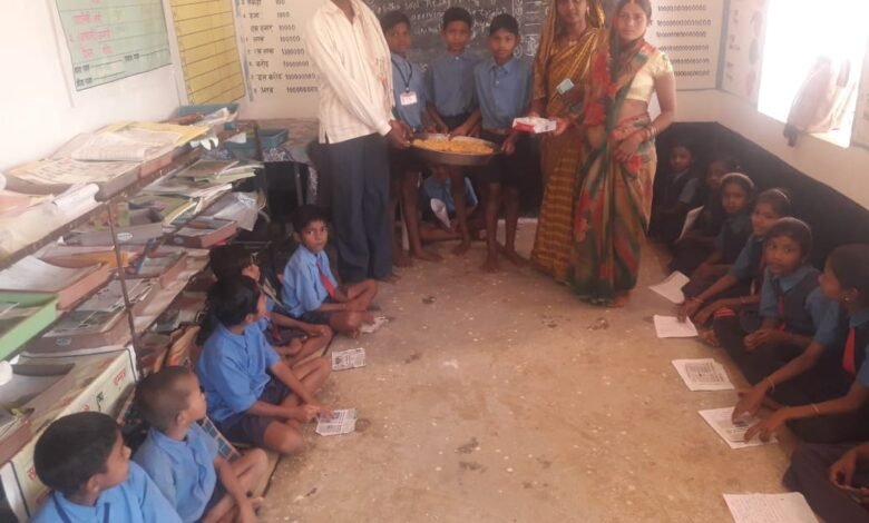 भिनित्य निषाद के जन्मदिन पर सेनडोंगर स्कूल में न्योता भोज का आयोजन किया गया