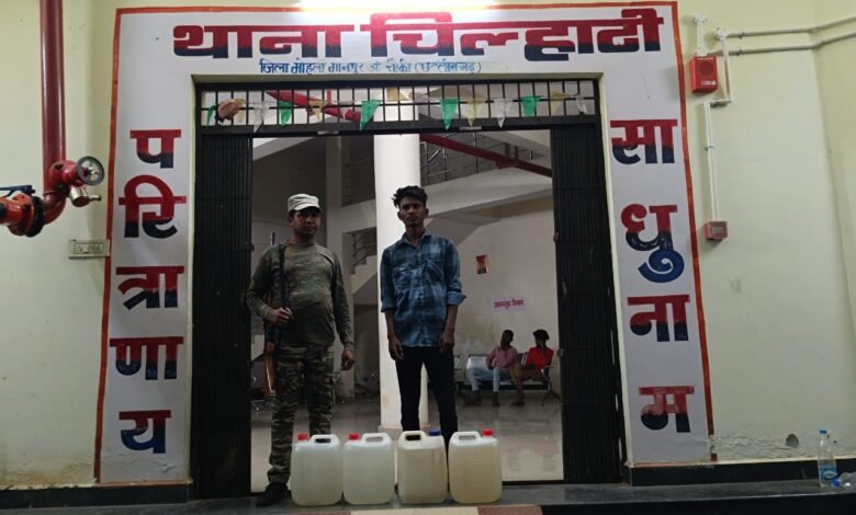 थाना चिल्हाटी क्षेन्त्रार्गत ग्राम मुजाल मेन रोड बडे मुंजाल जाने की रोड तिराहा पर आरोपी अनिल नुरेटी के कब्जे से 40 लीटर कच्ची महुआ शराब जप्त कर आबकारी एक्ट के तहत कार्यवाही किया गया