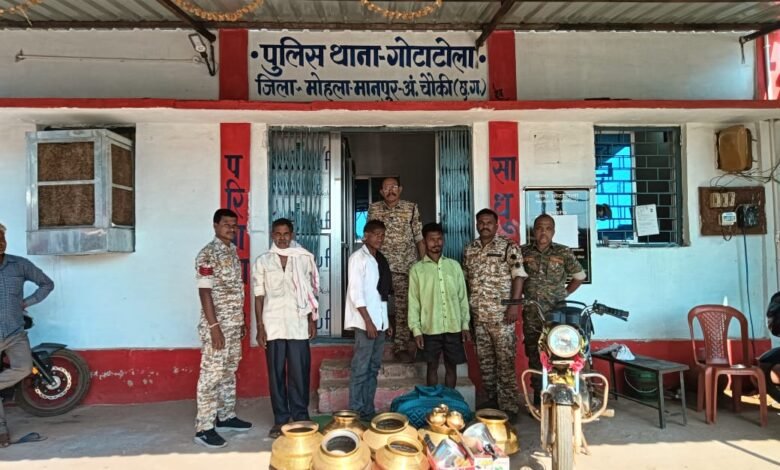 विवरण- श्रीमान पुलिस अधीक्षक मोहला मानपुर अं0चौकी श्री यशपाल सिंह(भा. पु. से) व श्रीमान अतिरिक्त पुलिस अधीक्षक जिला मोहला मानपुर अम्बागढ़ चौकी श्री मयंक गुर्जर(भा. पु. से) के निर्देशन एवम पुलिस अनुविभागीय अधिकारी अम्बागढ़ चौकी श्री अर्जुन कुर्रे के मार्गदर्शन में  थाना प्रभारी गोटाटोला सुरेंद्र नेताम के नेतृत्व में