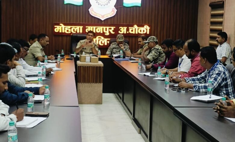 उक्त मीटिंग में वरिष्ठ अधिकारियों के अतिरिक्त थाना मोहल्ला, चिल्हाटी, मानपुर, सीतागांव, मदनवाडा , कोहका, आंधी , खडगांव पाटनखास के थाना प्रभारी एवं मोहला मानपुर अंबागढ़ चौकी ब्लॉक के डीजे संचालक एवं साउंड सर्विस के मालिक करीबन 50-60 लोग उपस्थित रहे l