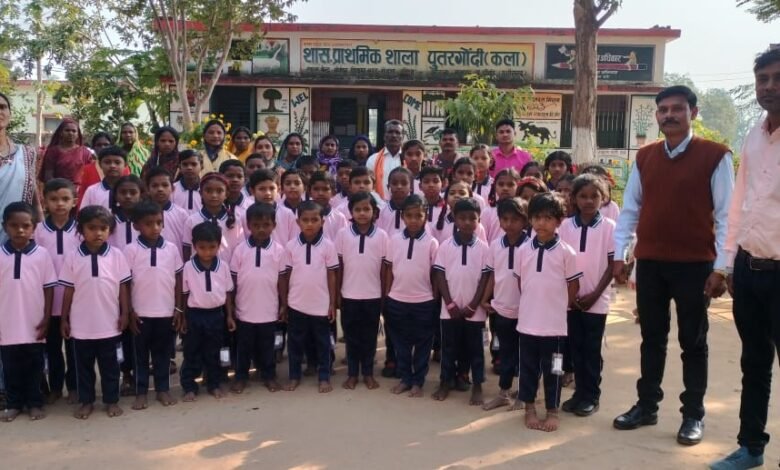 मोहला ब्लाक के क्षेत्र पुतरगोंदी कला में पालकों व शिक्षको की पहल से बच्चो को ट्रैक शूट वितरण किया गया