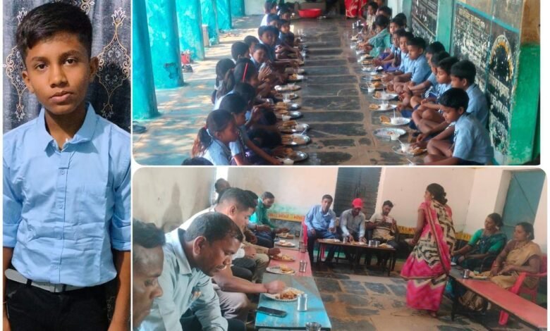 मोहला ब्लाक के क्षेत्र पुतरगोंदी कला में बच्चो को कराया न्योता भोजन शिक्षक पेमेंद्र साहू ने पुत्र के जन्म दिन पर