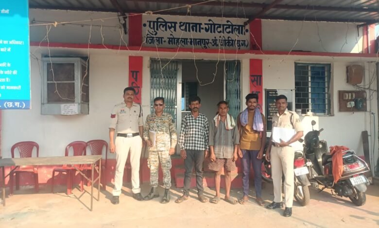 पुलिस अधीक्षक महोदय, जिला मोहला मानपुर अं0चौकी  यशपाल सिंह (भापुसे0) के निर्देशन में व अतिरिक्त पुलिस अधीक्षक महोदय जिला मोहला मानपुर अं0चौकी  पिताम्बर पटेल एवं पुलिस अनुविभागीय अधिकारी महोदय अं0चौकी  ताजेश्वर दीवान के मार्गदर्शन में थाना गोटाटोला प्रभारी निरीक्षक संदीप टोप्पो के नेतृत्व मे दिनांक 20/ 03/2025 को थाना गोटाटोला में मुखबीर से सूचना प्राप्त हुआ कि ग्राम मचानदूर की ओर से एक महाराष्ट्र पासिंग पिकअप गाड़ी जिसमें मवेशियों की तस्करी करते हुए कत्ल खाने महाराष्ट्र ले जाया जा रहा है गोटा टोला तालाब के पास पहुंचकर एनसीपी की कार्यवाही कर समस्त वाहनों का सघन चेकिंग कर रहे थे वाहन चेकिंग के दौरान एकव्यक्ति मोटरसाइकिल क्र CG08 AY 9532 लेकर आया जिसे रोककर पूछताछ किया जो अपना नाम लखन लाल पाल पिता भादू राम उम्र 45 साल निवासी ग्राम केवटोला का होना बताया जो पुलिस पार्टी को देखकर घबराने लगा जिससे पूछताछ करने पर बताया कि वह मवेशी गाड़ी के आगे पायलटिंग का काम करता है और यदि पुलिस की गतिविधि दिखती है तो वापस मोटरसाइकिल से लौटकर पिकअप को दूसरी दिशा में रवाना कर देता है पूछताछ के कुछ समय पश्चात वाहन चेकिंग के दौरान एक सफेद रंग का पिकअप वाहन जिसका नंबर MH BJ 5538 को रोक कर वाहन चालक से पूछताछ किया जो अपना नाम जयंत गोटा पिता कवल साय गोता उम्र 42 वर्ष निवासी ग्राम बोरी थाना बेड़गांव जिला गढ़चिरोली महाराष्ट्र बताया तथा वाहन चालक के साथ एक अन्य व्यक्ति भी गाड़ी में बैठा था जो अपना नाम विकेश काटेगा पिता लालूराम उम्र 22 वर्ष निवासी ग्राम हूडुकदुमा थाना बेड़गांव जिला गढ़चिरोली महाराष्ट्रबबताया पूछताछ के पश्चात वाहन का गवाहों के समक्ष तलाशी करने पर वाहन के अंदर 8 नग मवेशी पाए गए जिन्हें आरोपीगण पिकअप वाहन में ठूस ठूस कर भरकर बिना दाना पानी चारा एवं बिना मेडिकल उपचार सामग्री के यातायात नियमों का उल्लंघन कर विधि का पालन न कर मवेशियों को तस्करी कर कतल खाने महाराष्ट्र की ओर ले जा रहे थे तलाशी लेने के उपरांत पिकअप वाहन से 8 नग मवेशी को बरामद कर जपती की कार्यवाही किया गया आरोपियों के विरुद्ध पर्याप्त साथ सबूत पाए जाने पर थाना गोटा टोला में अपराध क्रमांक 04/2025 धारा:04,06,10,11 छत्तीसगढ़ कृषिक पशु परिरक्षण अधिनियम 2004,11 पशुओं के प्रति क्रूरता का निवारण अधिनियम 1960,47 A,47 C,48,49,50,52,54(1)(2)(3) छत्तीसगढ़ पशु परिवहन अधिनियम 1978,325 भारतीय न्याय संहिता,66/192 MV एक्ट दर्ज कर विवेचना में लिया गया। तीनो आरोपियों को विधिवत गिरफ्तार कर रिमांड पत्रक तैयार कर माननीय न्यायालय के समक्ष पेश कर न्यायिक अभिरक्षा में जेल दाखिल किया गया है।