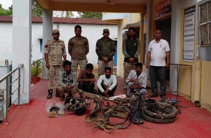 मामले का संक्षिप्त विवरण इस प्रकार है कि दिनांक 04.04.2026 को आवेदक रमेश कुमार मांझी द्वारा उसके डेढ साला मृतक सुबेसिंह के मोटर सायकल क्रमांक सीजी 08 एएम 9901 के चोरी हो जाने केे संबंध में रिपोर्ट लिखाया रिपोर्ट बाद चोरी गये मोटर सायकल की पतासाजी हेतु मुखबीर तैनात करने पर सूचना मिला की शेरपार के कुछ लोग मोटर सायकल के पार्ट्स बेचने के लिये घुम रहे हैं कि सूचना तस्दीक हेतु संदेही निखिल भुआर्य, अजय कुमार, गुलशन बघेल, सोनू उर्फ मुकुल विश्वकर्मा निवासी नयापारा शेरपार को प्रकरण में चोरी हुये माल मशरूका के संबंध मे पूछताछ कर मेमोरेण्डम कथन लिया गया जिन्होने अपने-अपने मेमोरेण्डम कथन में बताये कि दिनांक 31.03.2026 के प्रातः शादी कार्यक्रम में रानाटोला जा रहे थे तो बिटेझर डोगरी मोड के पास सडक पर मोटर सायकल रखा था जिसको निखिल और अजय ने बेचने की नियत से चोरी कर वहा से हटा कर जंगल में गढ्ढा मे छिपा दिये और एक दिन बाद दिनांक 01.04.2026 की रात्रि में निखिल, अजय, गुलशन, साथ मिलकर मोटर सायकल को लुड़काते हुये शेरपार लाये मिस्त्री मुकुल को बोले कि मोटर सायकल को बेचना हैं तब सभी का आपस मे बात हुआ कि खडी मोटर सायकल बेचेगें तो पकडा जायेगें बोलकर मिस्त्री मुकुल विश्वकर्मा को मोटर सायकल का पुर्जा / पार्ट्स को अलग अलग करवाये और बेचने की फिराक मे घुम रहे थे बताये चोरी किये मोटर सायकल के पार्ट्स को निखिल भुआर्य के मेमोरेण्डम कथन के आधार पर आरोपीगणों से जप्त किया गया जो मोटर सायकल के कलपुर्जे अलग अलग भाग में मिले तथा आरोपीगणों द्वारा घटना कारित करने मेें प्रयुक्त मोटर सायकल क्रमांक सीजी 08 एडी 1550 सीबी साईन होण्डा मोटर सायकल को आरोपी निखिल भुआर्य के कब्जे से जप्त कर आरोपीगणों निखिल भुआर्य, अजय कुमार, गुलशन बघेल, मुकुल विश्वकर्मा का कृत्य अपराध धारा 303(2),), 238, 3(5) बी.एन.एस. का घटित करना पाये जाने से गिरफ्तारी का कारण बताकर आज दिनांक 01.04.2026 के क्रमशः 15ः20, 15ः30, 15ः40, 15ः50 बजे गिरफ्तार कर गिरफ्तारी की सूचना परिजनों को दिया जाकर रिमांड पर माननीय न्यायालय पेश किया गया। जिसमें थाना खड़गावं पुलिस की सराहनीय भूमिका रही।